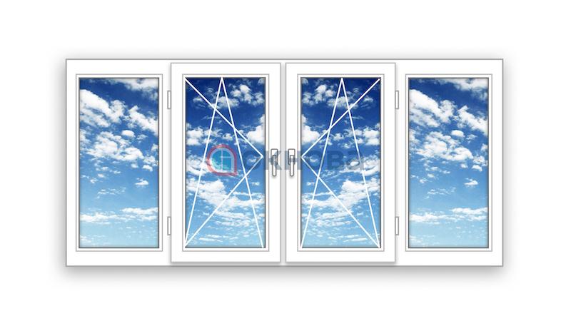 Готовая балконная рама ПВХ Rehau поворотно-откидная Accado две створки по центру 2 стекла (2800х1500х60)