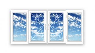 Готовая балконная рама ПВХ Rehau поворотно-откидная Maco две створки по центру 2 стекла (2900х1500х60)