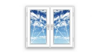 Готовое двухстворчатое окно ПВХ Rehau поворотно-откидные 2 створки Maco 3 стекла (1400x1000x70)