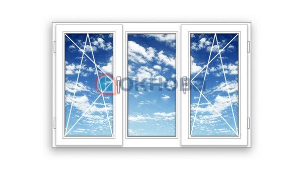 Готовое трехстворчатое окно ПВХ Brusbox поворотно-откидное Maco 2 створки по краям 3 стекла (1770x1320x70)