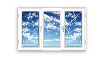Готовое трехстворчатое окно ПВХ Brusbox поворотно-откидное Roto 2 створки по краям 3 стекла (2070x1170x70)