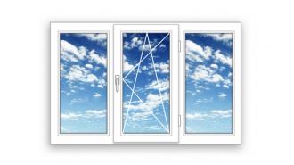 Готовое трехстворчатое окно ПВХ Brusbox поворотно-откидное Roto по середине 3 стекла (2100x1400x 70)